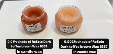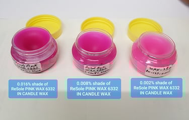 Powder colourants, suitable for all types of wax. Highly concentrated, required in minimal dosage. No settling, no bleeding, no migration. Can be mixed with other colours to make a unique combination shade of your own. Say no to the hastle of drop-by-drop measurement of liquid wax colours, choose powder colours by ReSole®